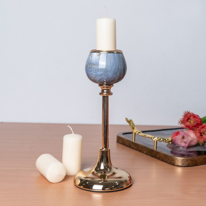 Candle holder, GS, Metal/Glass, 25cm, 11cm, Black/Golden