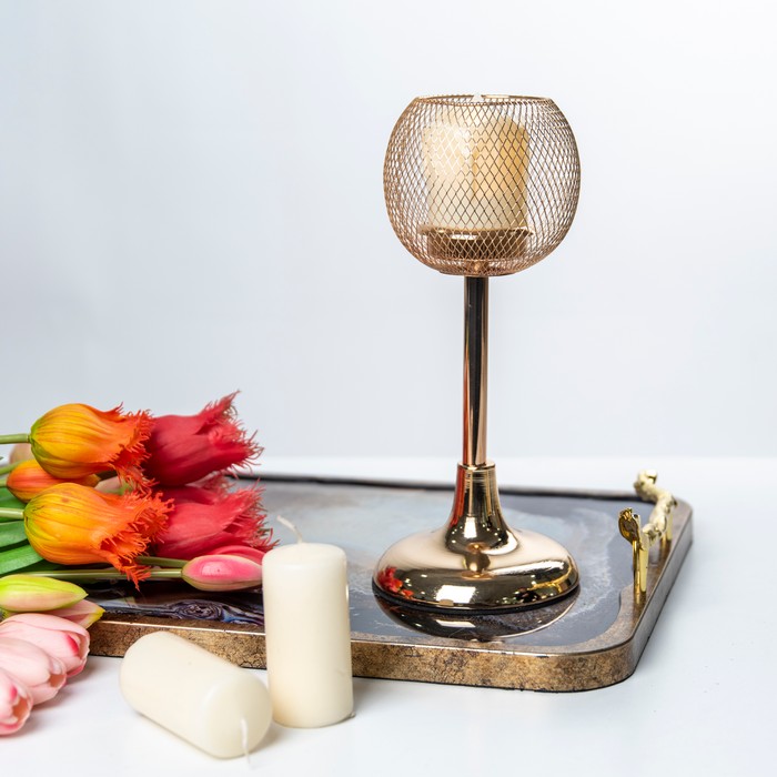 Candle holder, GS, Metal/Glass, 30cm, 11cm, Transparency/Golden