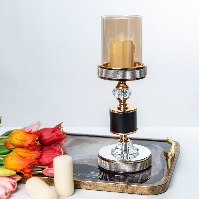 Candle holder, GS, Metal/Glass, 29cm, 12cm, Black/Golden