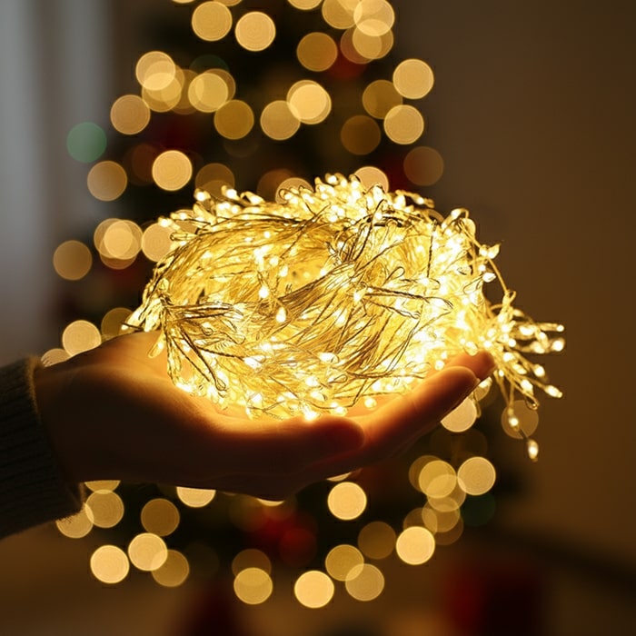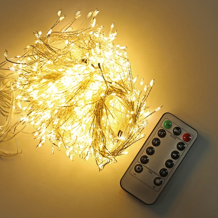 Christmas lights, GLOBAL CHRISTMAS, Curtain, 900 bulbs LED, 3x3m, White, 220 V, 8 Light modes, Warm Light
