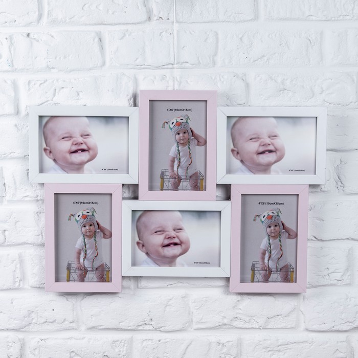 Divided photo frame, GS, 6 compartiments, 47cm, 34cm, Wood/Glass, Various Colors