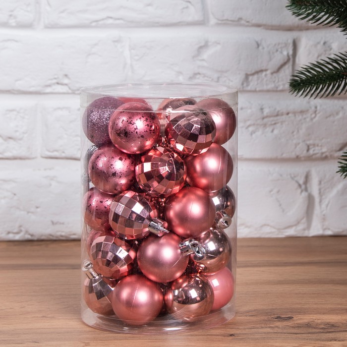Set of christmas balls, GLOBAL CHRISTMAS, 34 pieces, 4cm, Pink, PVC