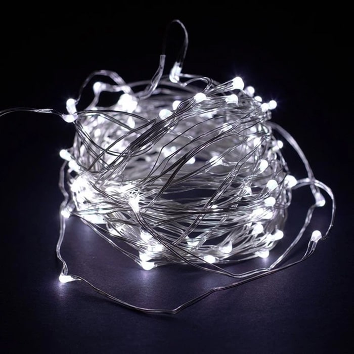 Light curtain with batteries, GLOBAL CHRISTMAS, 200 bulbs LED, 20 m, White, 220 V, 8 Light modes, Cold Ligh
