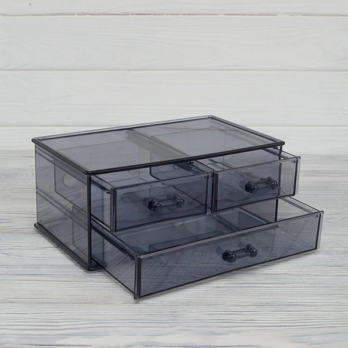 Cosmetics organizer, BEE HOME, Plastic, 2 levels, 3 drawers, Transparent, 23x14x10 cm