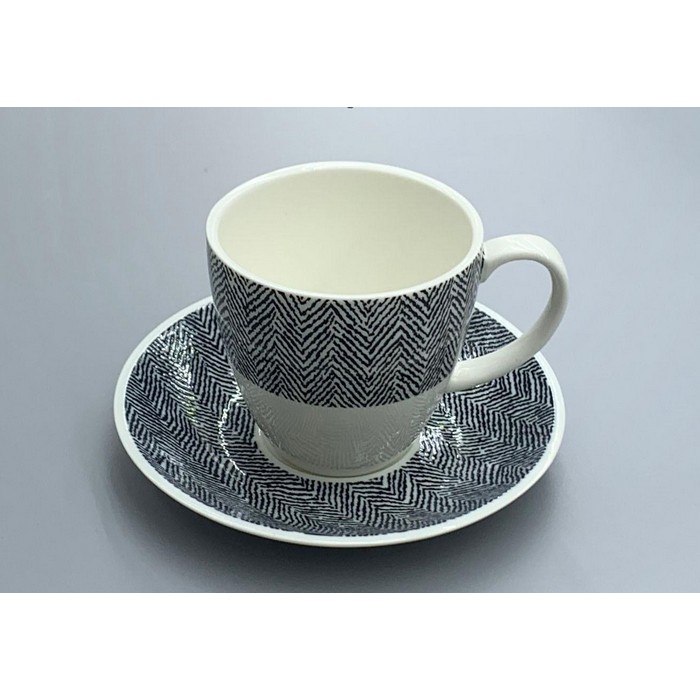 Set mug and plate, DANNY HOME, 12 pieces, Porcelain, 200ml, 8.2cm, 6.8cm, 14cm, 1.70cm, White/Black
