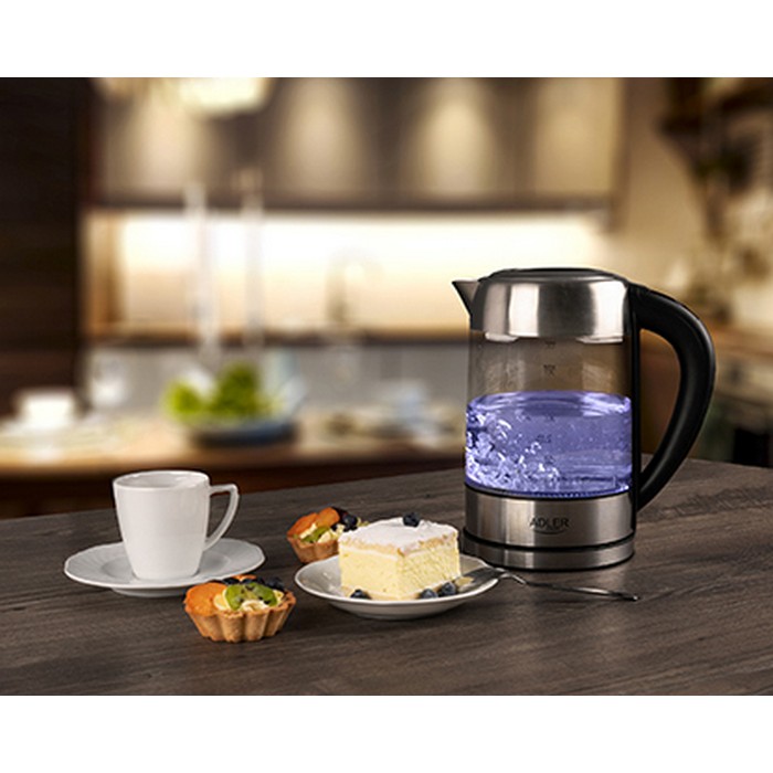 Electric kettle, ADLER, 1.7L, 2200 W, 220 V, Stainless steel, Transparent