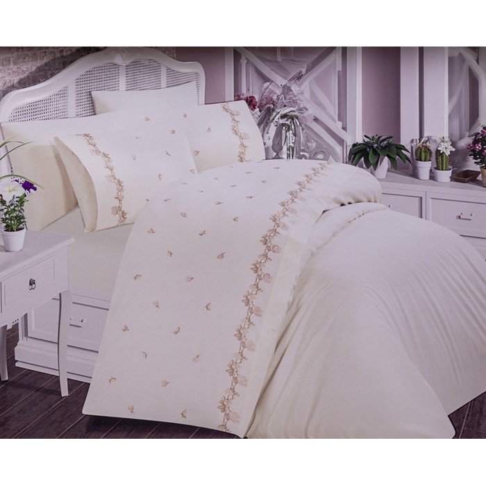 Bed linen set, MISS BELLA, 6 pieces, 200x220cm, 240x260cm, 50x70cm (4), Cotton, Cappucinno