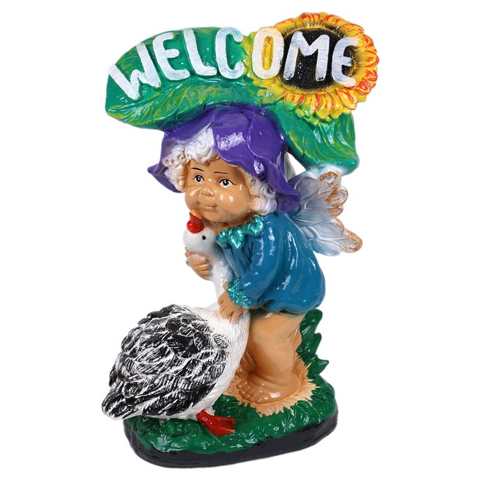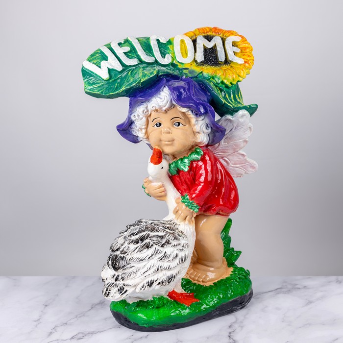 Garden figure boy with a goose welcome, ORIENS, Gypsum, mix