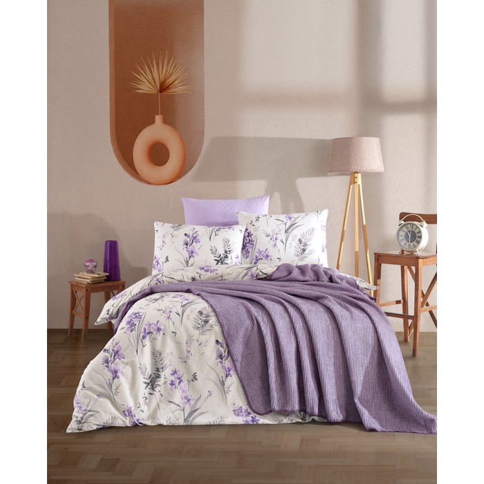 Bed linen set with blanket, NAZENIN, 5 pcs, 220x240cm, 200x220cm, 240x260cm, 50x70cm, Cotton, Lila