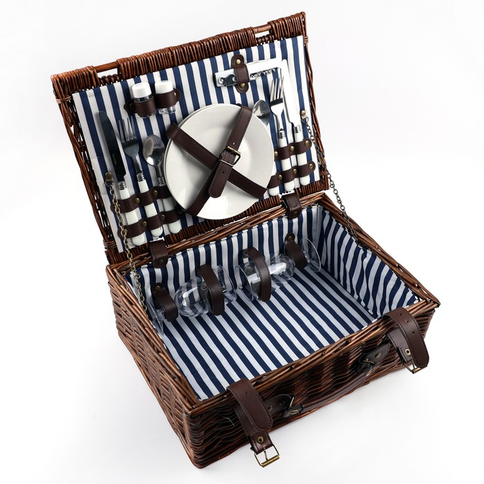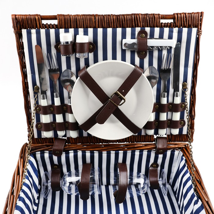 Picnic basket with accessories, GS, Rattan, Textile, 40x30x17cm, 12pcs