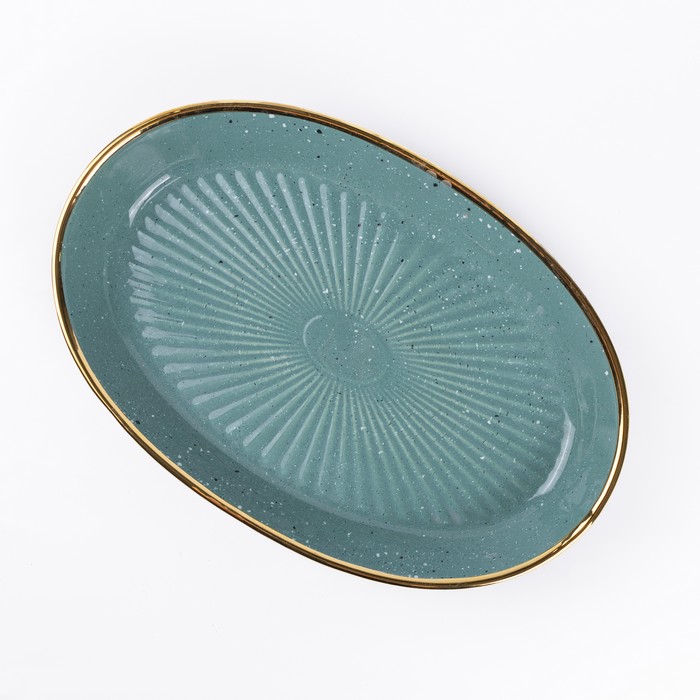 Oval plate, GS, Ceramics, Green/Golden, 29cm
