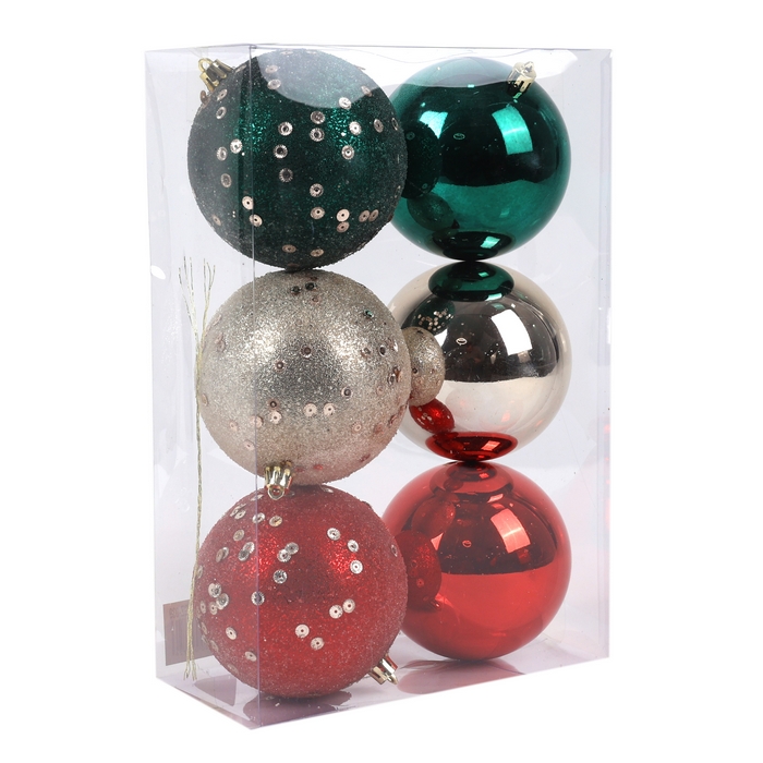 Set of christmas balls, GLOBAL CHRISTMAS, 6 pieces, 10cm, Green/Red, PVC