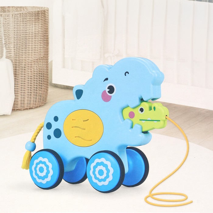 Guided toddler pull rope car "hippo", Baby Toy, Wood, 19+