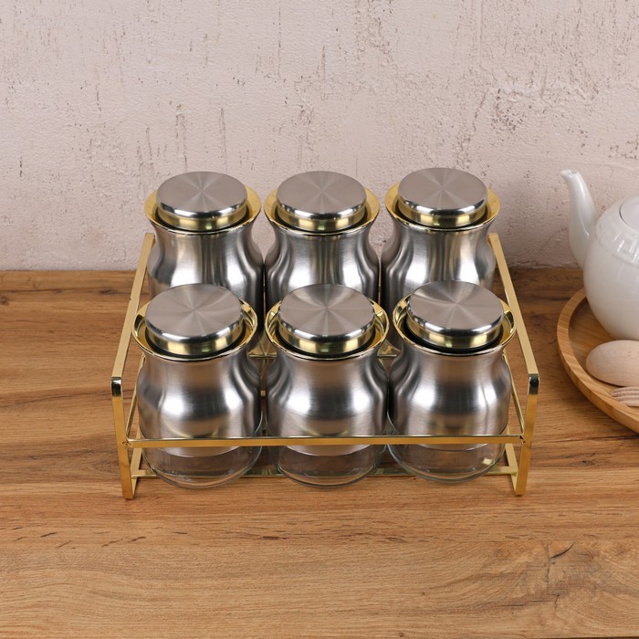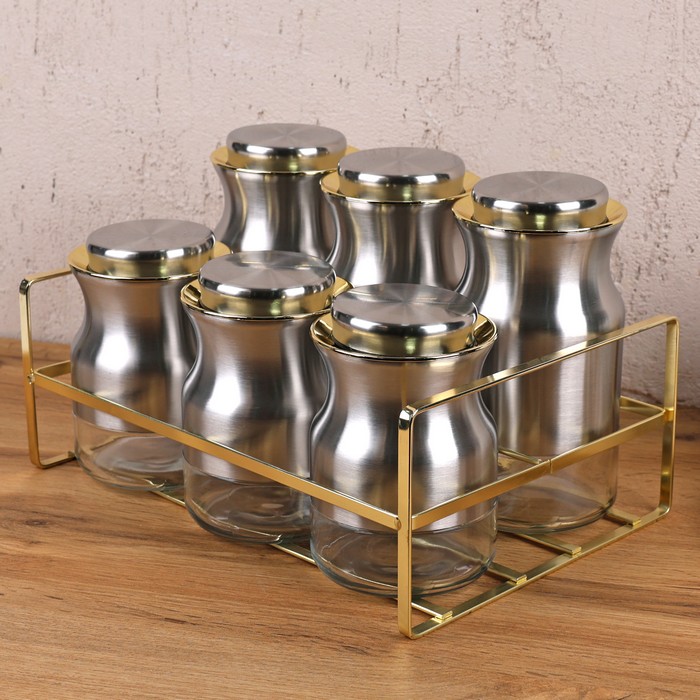 Set of storage containers, GS, 6 pieces, Stainless Steel, Monochrome