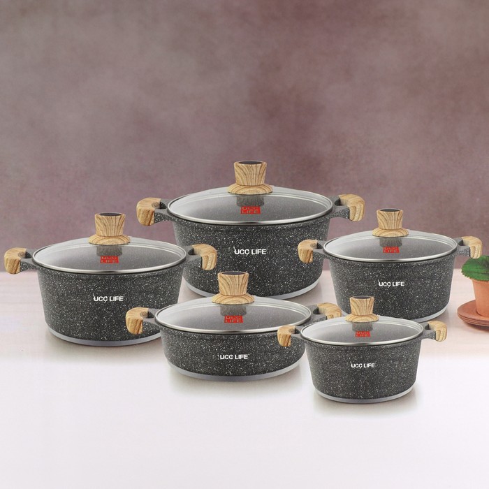 Cookware set, UCC LIFE, 10 pieces, Aluminium, 2.2 mm, Non-stick, 20cm, 24cm, 26cm, 28cm, 32cm