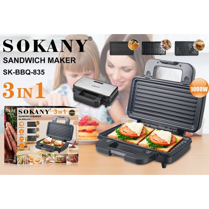 Sandwich -maker, SOKANY, Stainless Steel/Plastic, 1000 W, 3 IN 1, 220/240 V, Black