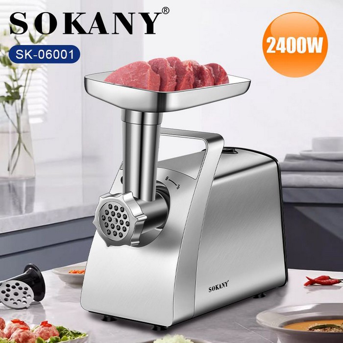 Meat grinder, SOKANY, Stainless Steel, 2400 W, Metallic, 3 IN 1, 220/240 V