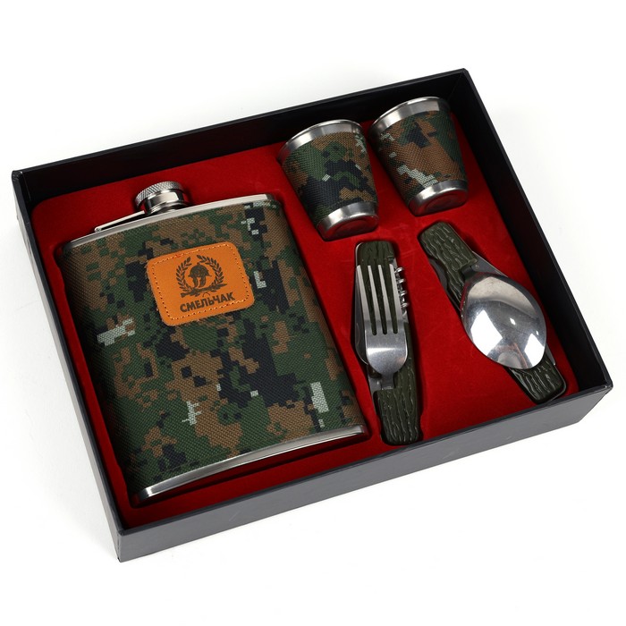 Flask with shot glass gift set, GS, 5 pcs, Stainless Steel, 500ml, For Men