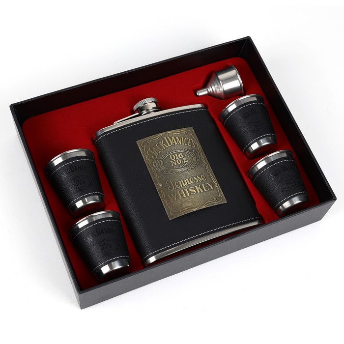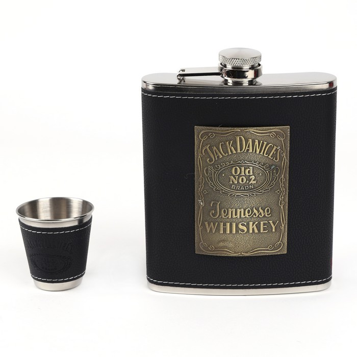 Flask with shot glass gift set, GS, Stainless Steel, 500ml, Black, For Men