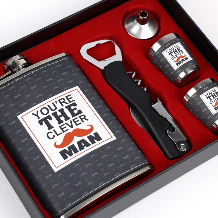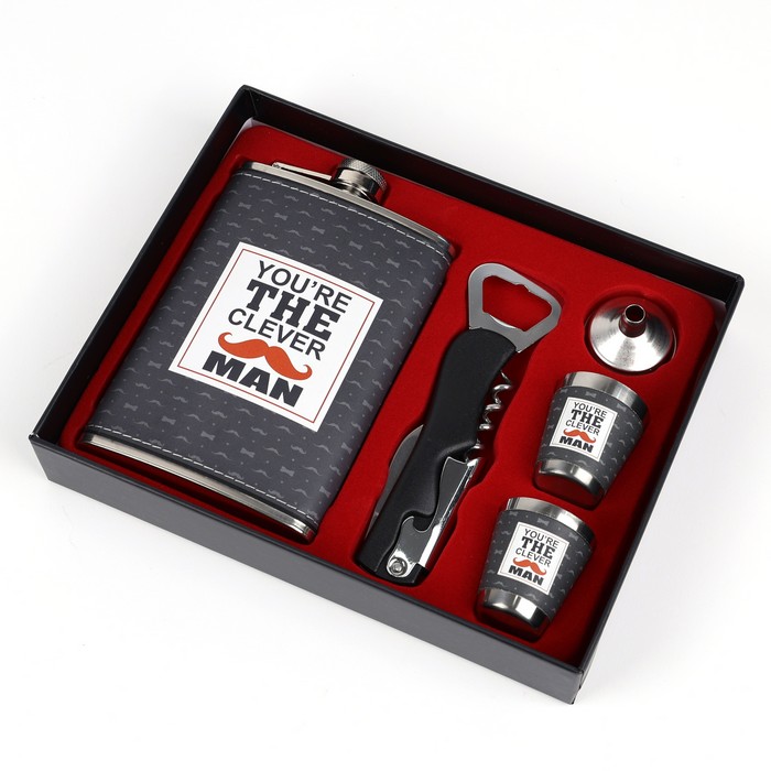 Flask with shot glass gift set, GS, 5 pcs, Stainless Steel, 270ml, For Men