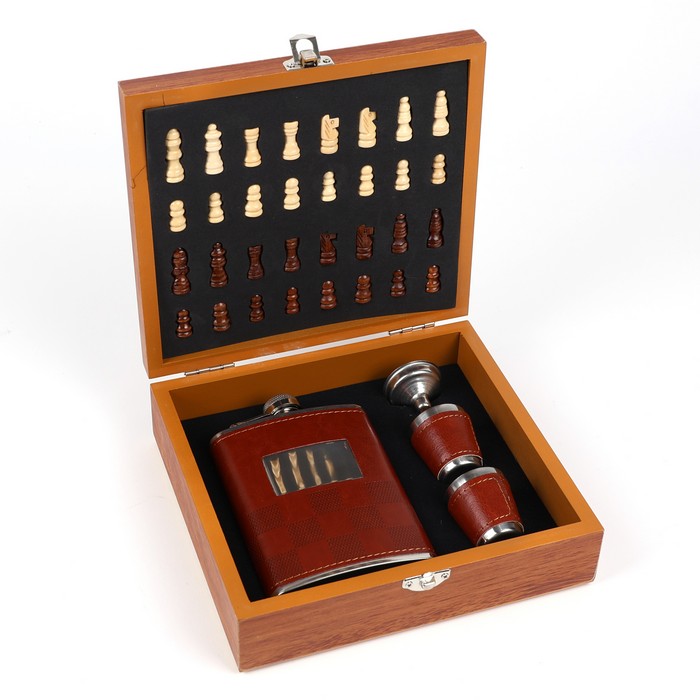 Hip flask and cups chess set, GS, 5 pcs, Stainless Steel, 240ml, For Men