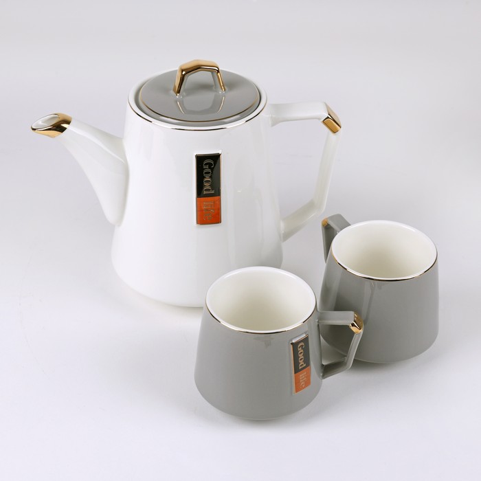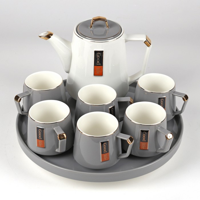 Tea set, GS, 8 pcs, Porcelain, White/Gray