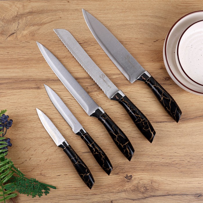 , Priority Chef, 5 pcs, Stainless Steel, 9cm, 13cm, 20cm, White/Black