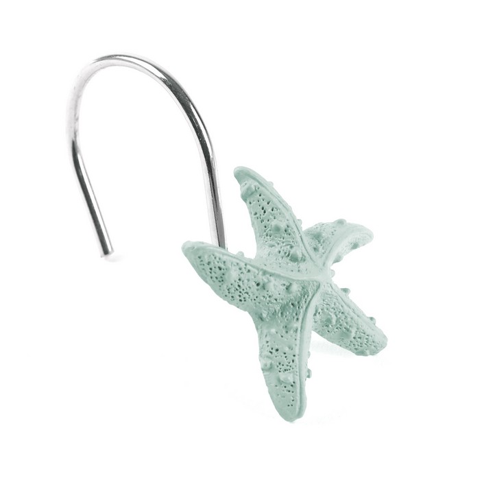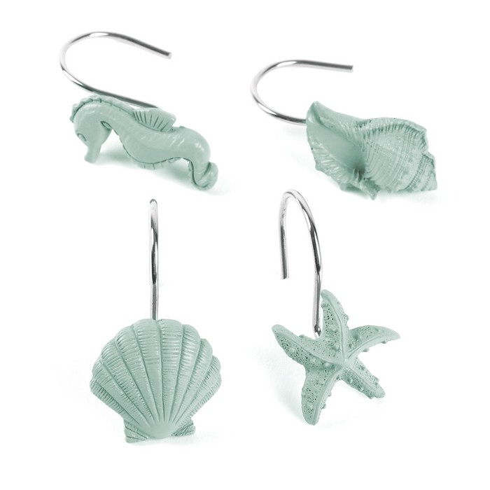 Shower curtain rings, SANITARY, Metal, Polyresin, Mint, 12 pieces, Seahorse