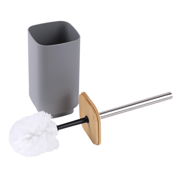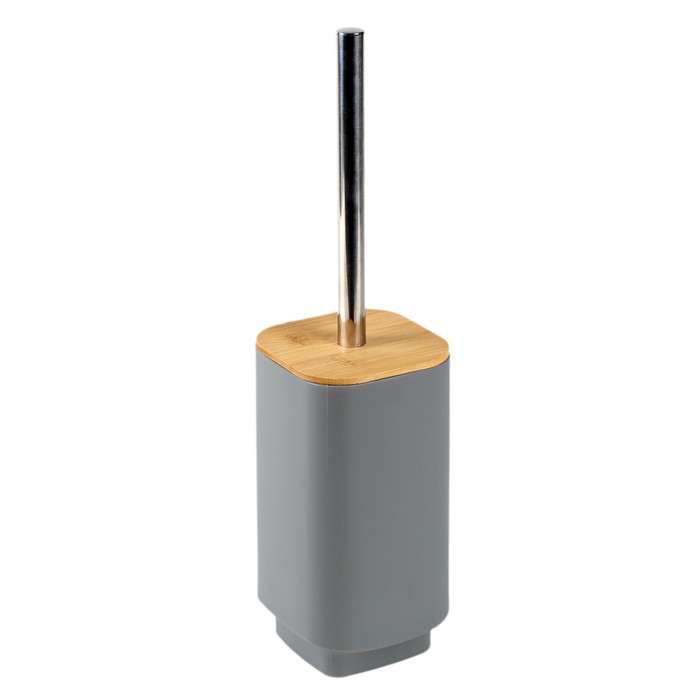 Toilet brush, SANITARY, Plastic/Bamboo, Gray, With stand
