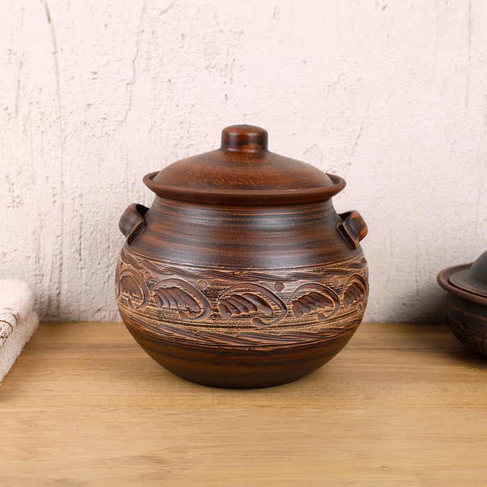 Oven pot, ORIENS, Argila, Decor, Carving, 5.5L, With lid, With 2 handles
