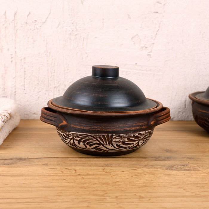 Oven pot, ORIENS, Argila, Angobe, 1.5L, With lid, With 2 handles