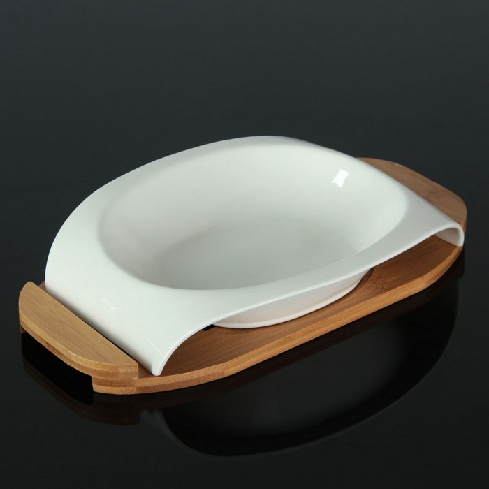 Bowl, GS, Ceramics/Bamboo, White, With stand