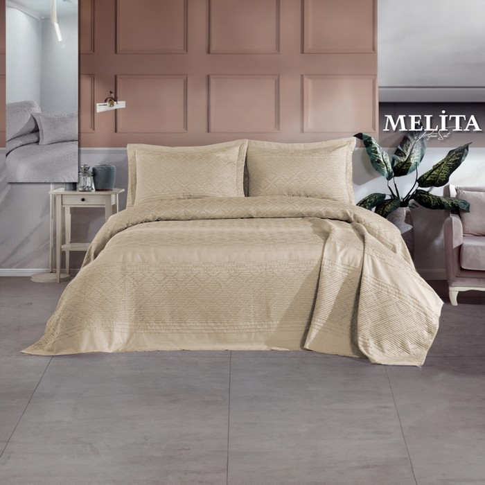 Duvet set with pillow cases, BIRHOME, Melita, 240x260cm, 60x80cm, Polyester, Cream