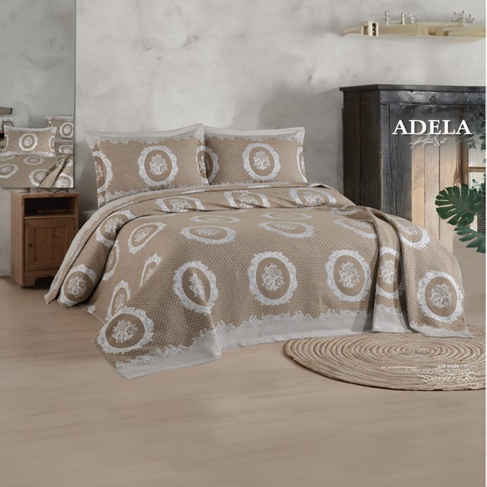 Set of duvet and pillow cases, BIRHOME, Adela, 240x260cm, 60x80cm, Polyester, Coffee