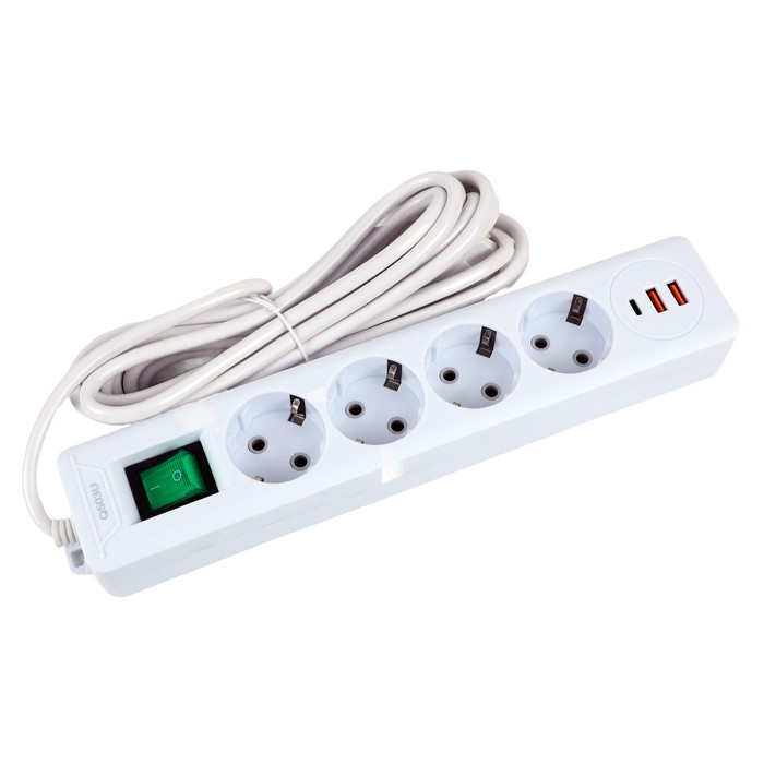 Outlet extender, GS, USB-A + USB-C, Plastic, White, 5 m