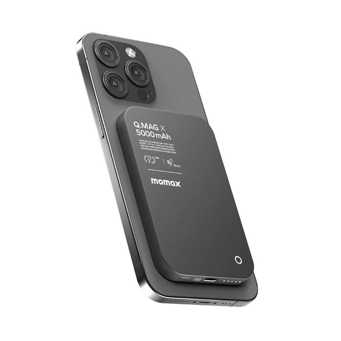 Power bank, Momax, Wireless, MagSafe, 5000 mAh, USB-C, Aluminium, Black