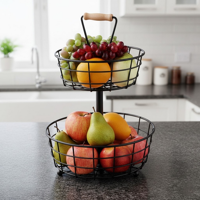 Fruit bowl, GS, Stainless Steel, Black, 2 levels