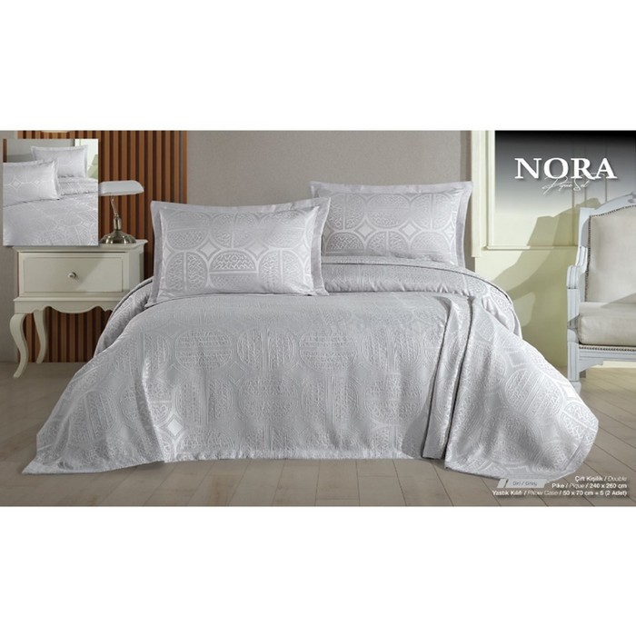 Bed cover with pillow cases, BIRHOME, 3 pieces, 240x260cm, 60x80 cm, Polyester, Cream
