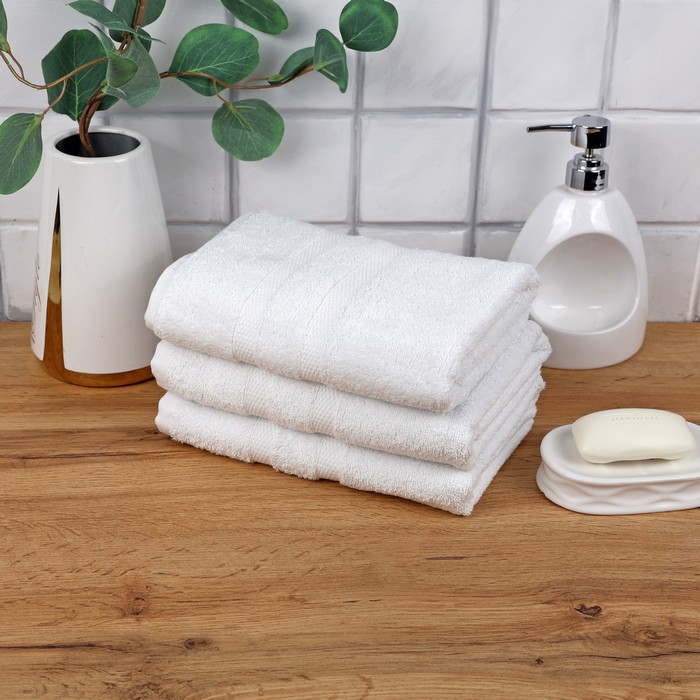 Face towel, MK HAVLU, Cotton, 70x140, White, 500gr/m2
