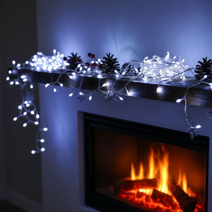 Christmas lights, GLOBAL CHRISTMAS, 196 LED bulbs, 3 m, White, 220/240 V, Transparent, Cold Ligh