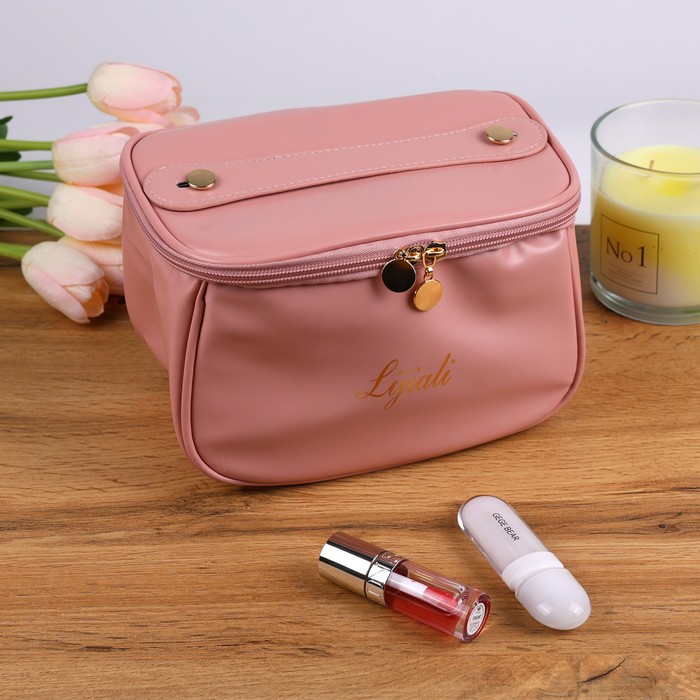 Cosmetic bag, LIJIALI, Eco Leather, 21x14cm, Powder pink