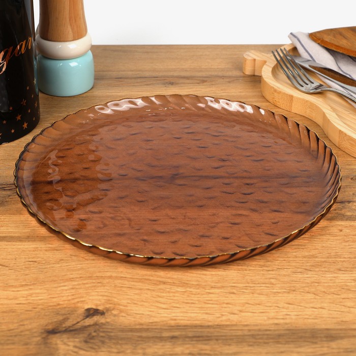 Serving plate, GS, Glass, 26,5cm, 1.8cm, Embossed, Pink, Round, Platter