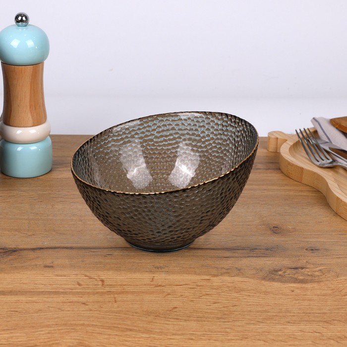 Bowl, GS, Glass, 17 cm, 10.8 cm, Gray, Embossed
