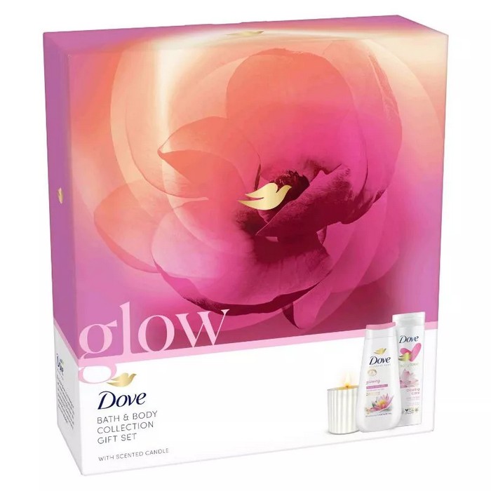 Gift set, DOVE, For Women, 3 pieces, Glowing, Shower Gel, Body lotion, Candle, Box
