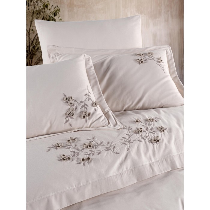 Bed linen set, IRINA HOME, 6 pieces, 240x260cm, 200x220cm, 50x70cm (4), Cotton, Beige, Floral, Turkey