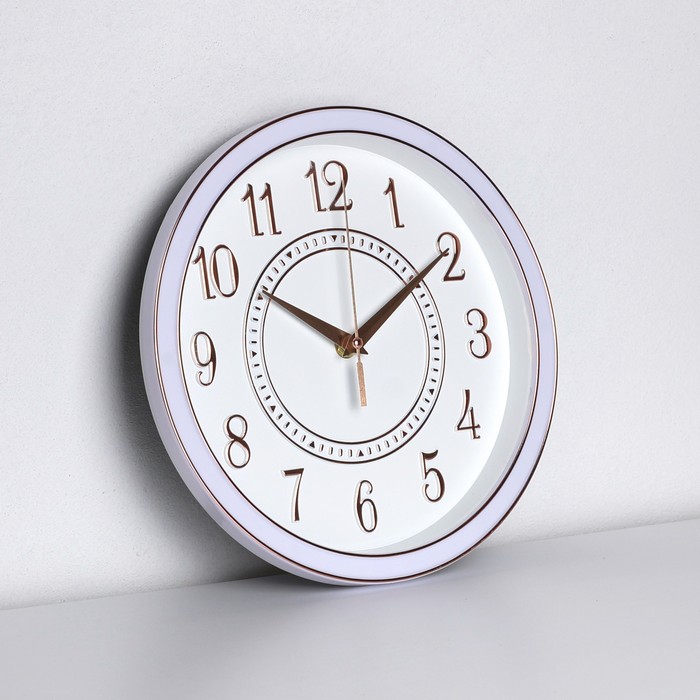 Clock, GS, For wall, 25cm, Plastic, White, Circular, Arabic numerals
