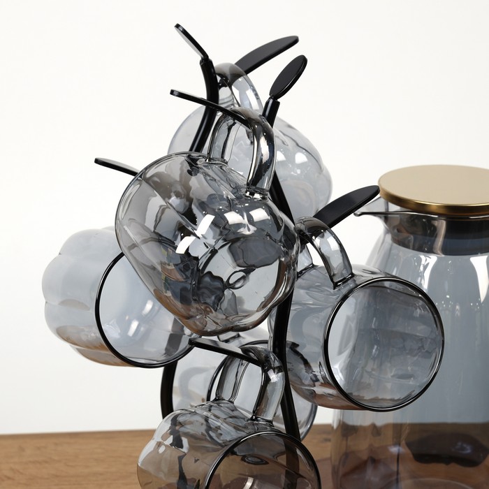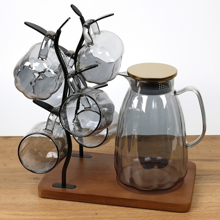 Jug set with cups, GS, 7 pieces, Glass, 1900ml, 360ml, Black
