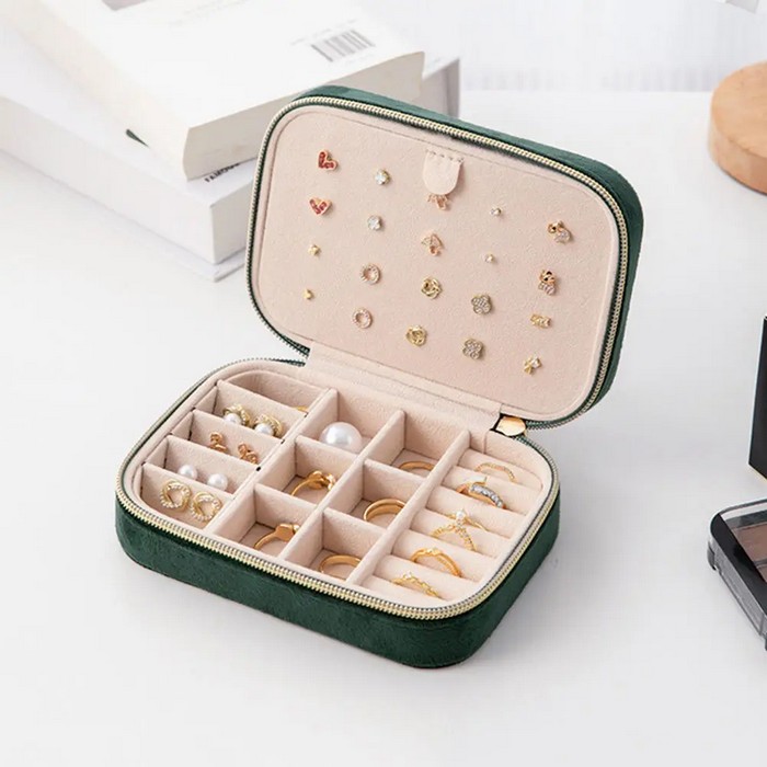 Jewelry organizer, GS, Velvet, 15x11x5 cm, Green