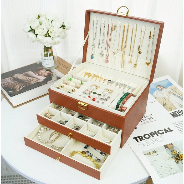 Jewelry organizer, GS, Eco Leather, 3 levels, 23x17.5x13 cm, Brown