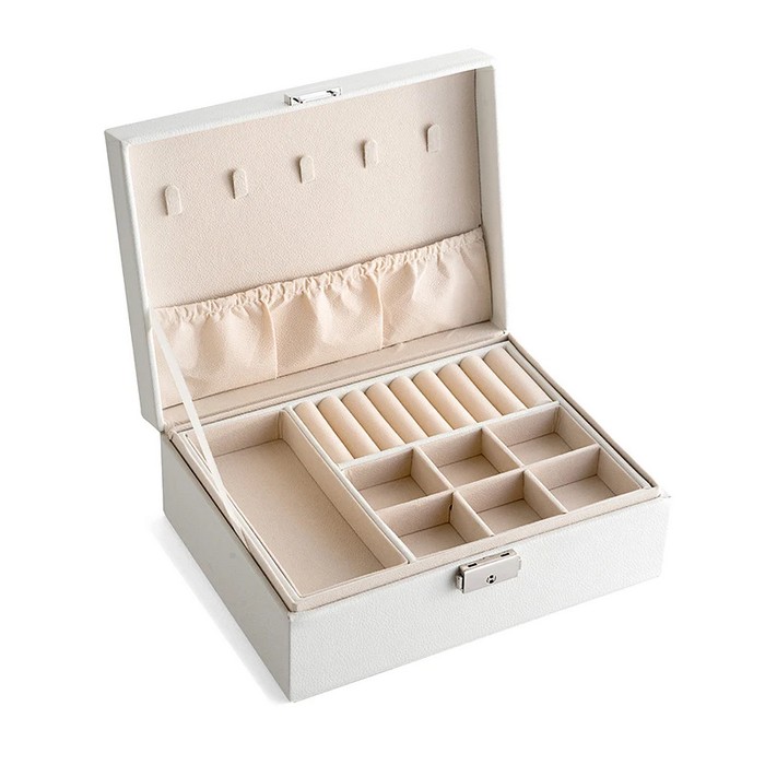 Jewelry organizer, GS, Eco Leather, 2 levels, 23x17x9.5 cm, White